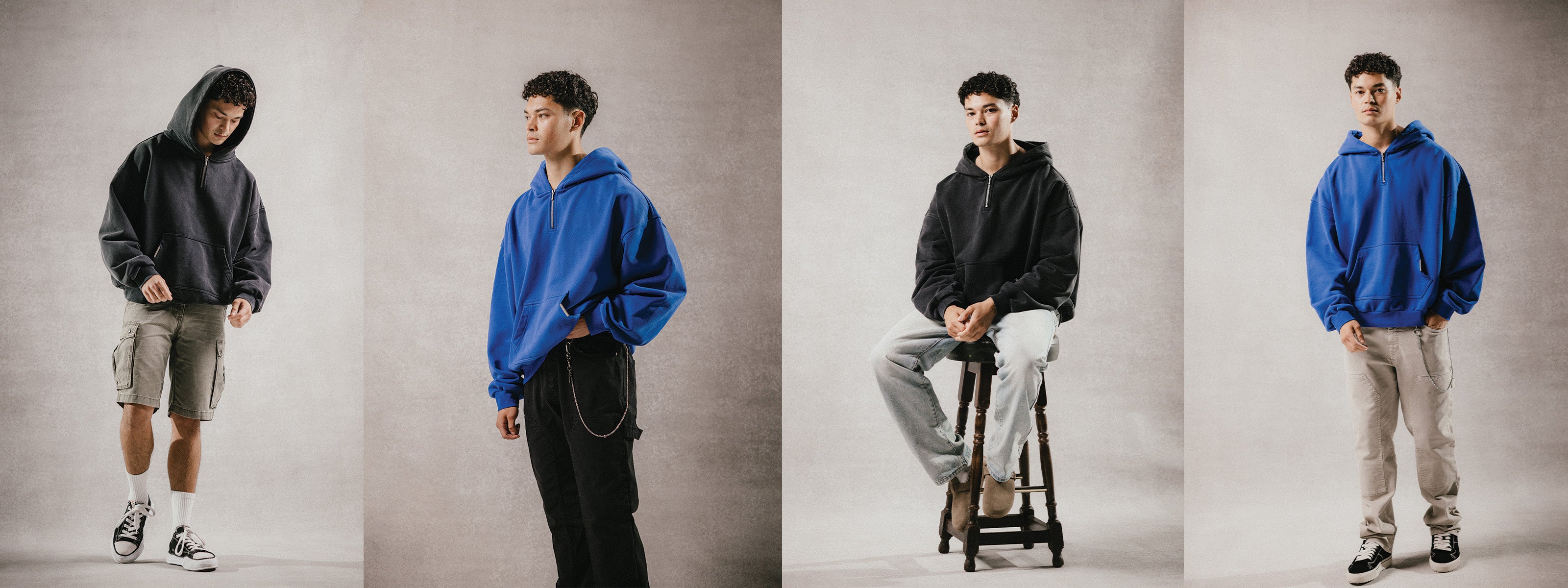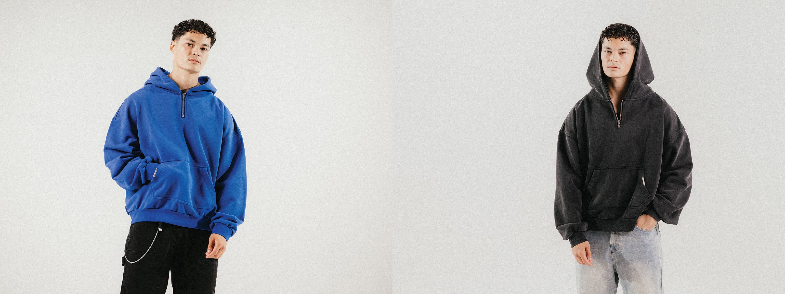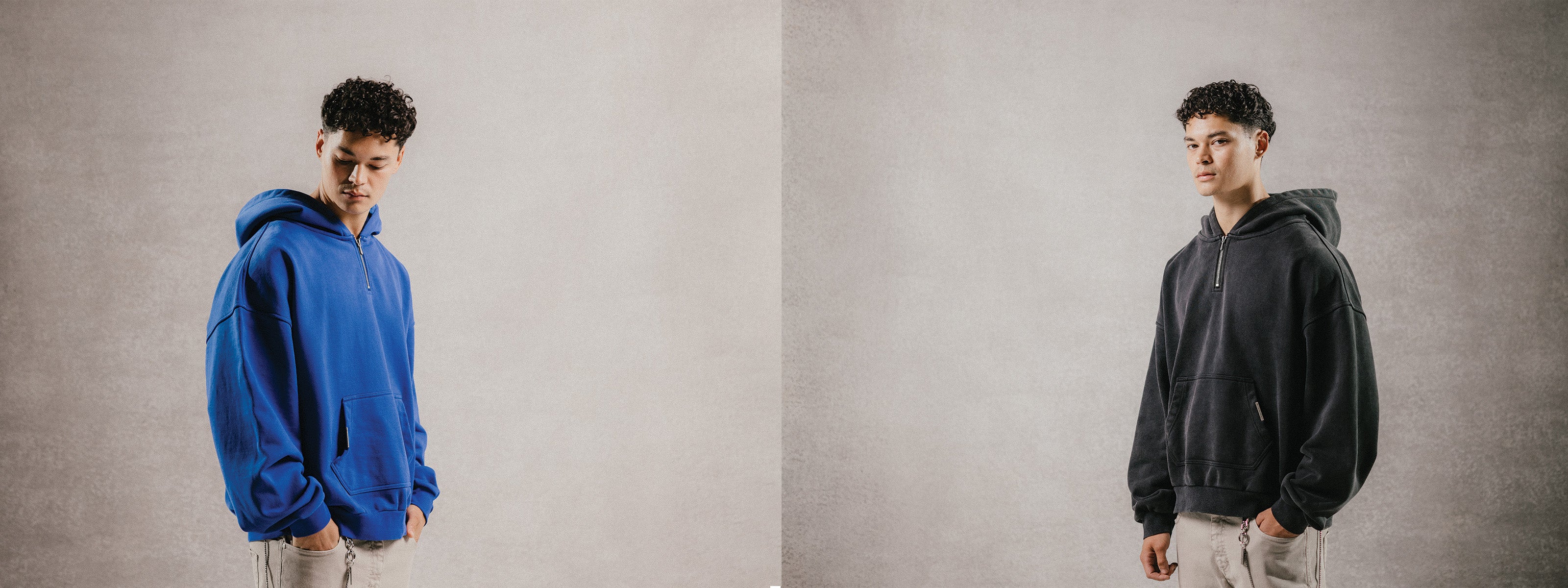 Vintage Washed Quarter Zip Hoodie - Royal Blue
