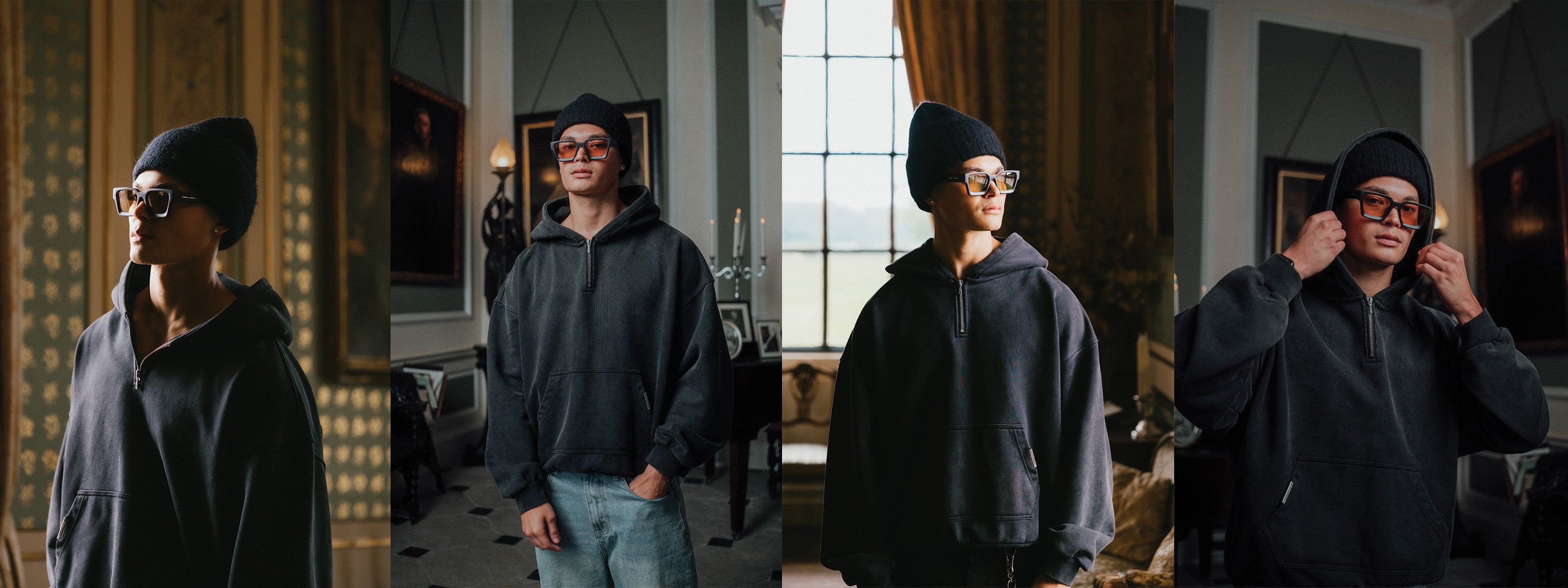 Vintage Washed Quarter Zip Hoodie - Charcoal
